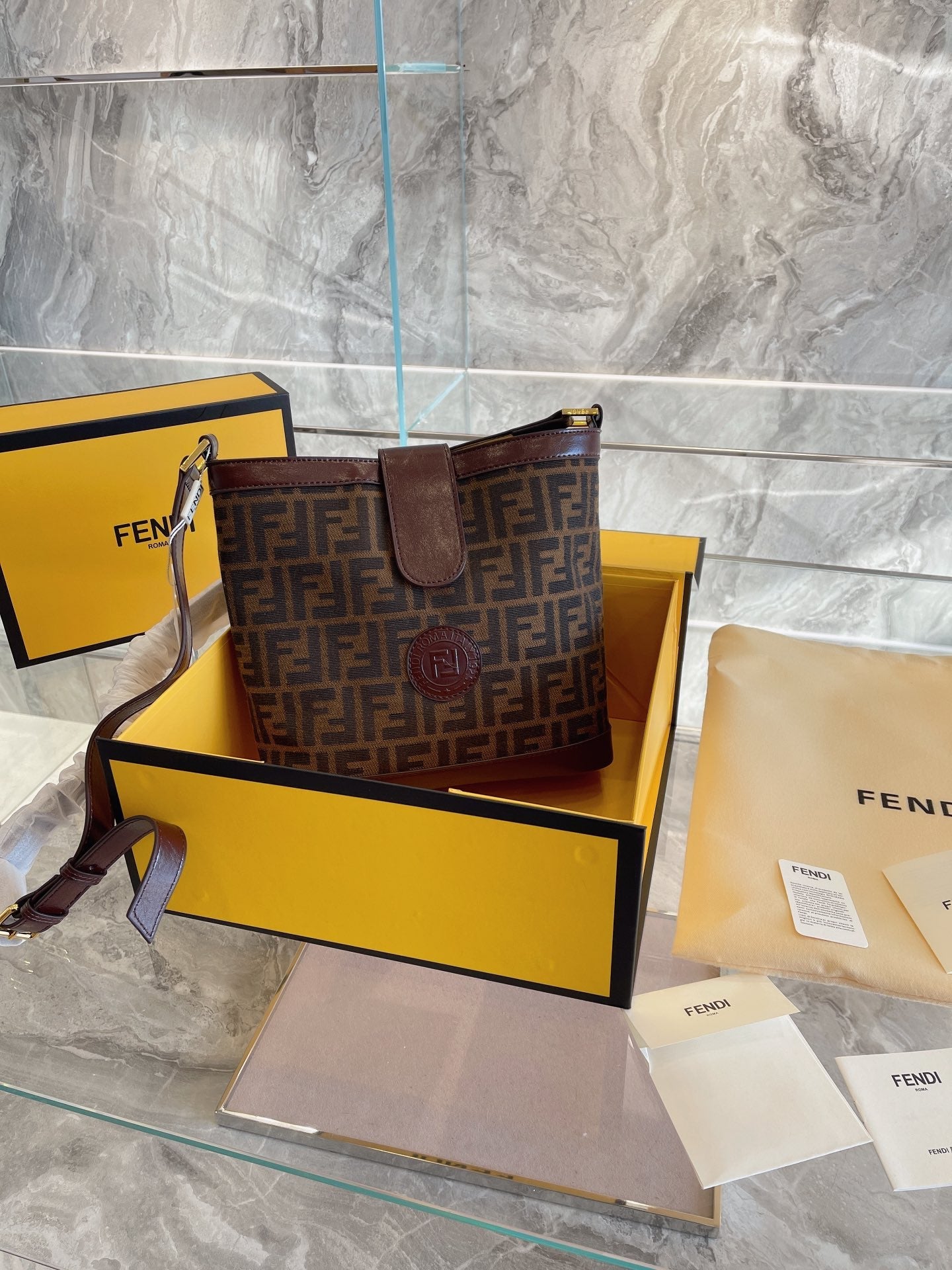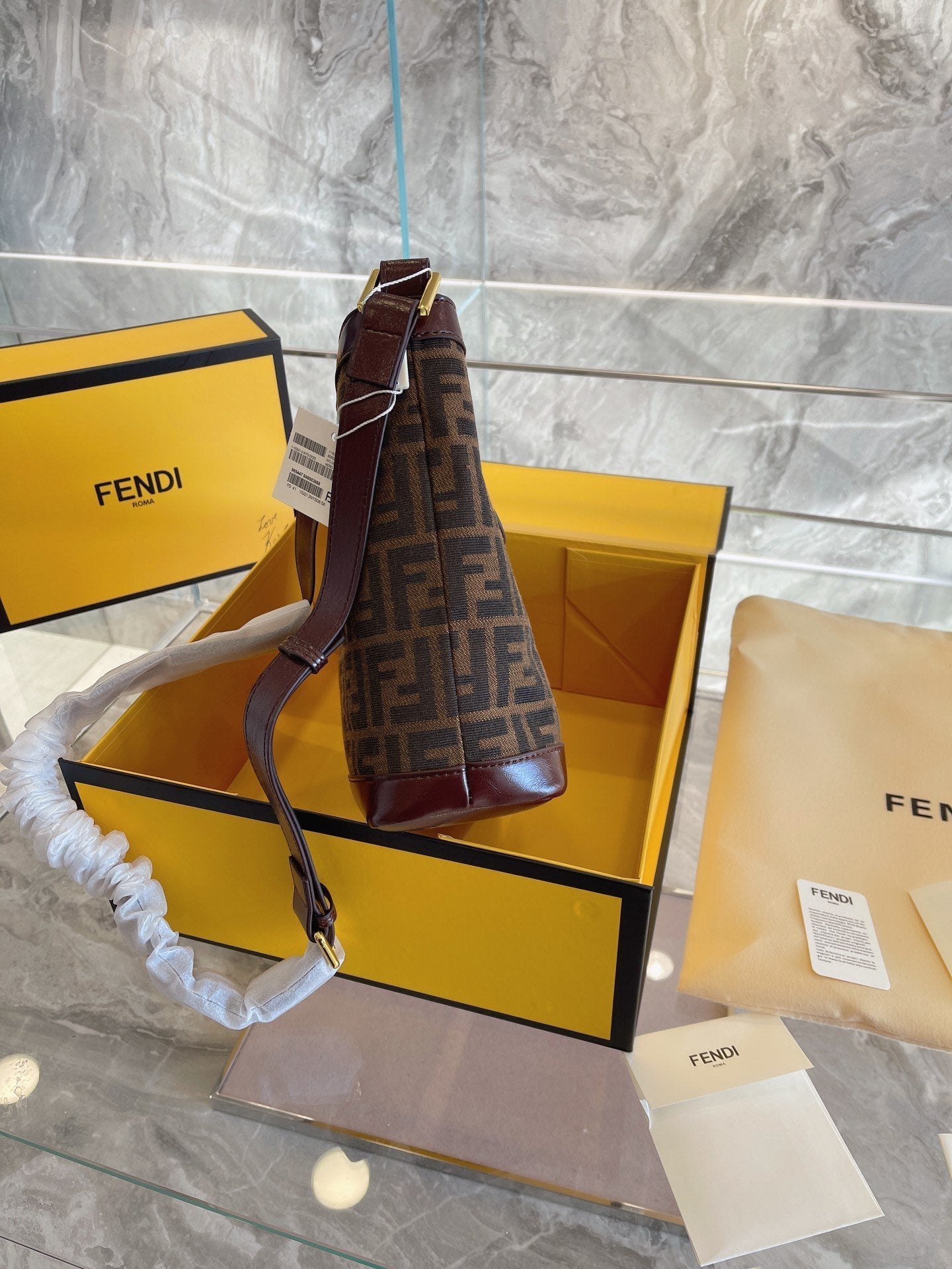 Includes Shipping bags, dustbag sleeper, care manual, booklet, tag.